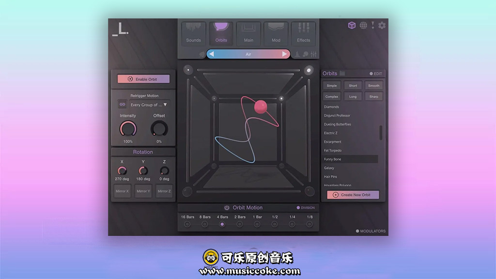 利用CUBE轨道系统的矢量合成力量,轨道是设计用来在采样器之间交叉淡入淡出的运动预设